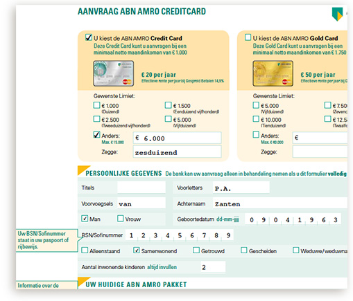 Het maken van invulbare pdf formulieren voor de ABN AMRO Bank. Een ingevulde pdf kan worden opgeslagen, gemaild of geprint.