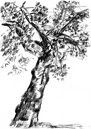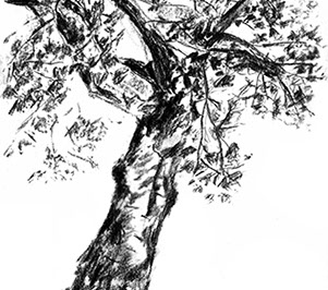 Illustratie gebruikt voor een folder over rouwverwerking. Getekend in het Westerpark, Amsterdam.