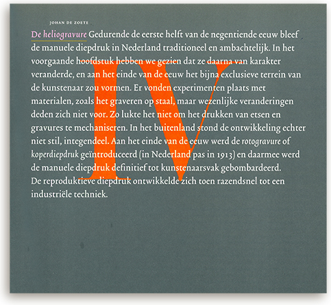 Opmaak en typografie van ‘Techniek van de Nederlandse boekillustratie in de 19e eeuw’. 1995. Omvang 128 pagina’s. Formaat: 240 x 315 mm.