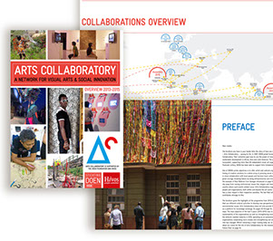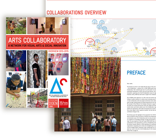Ontwerp en dtp van de Inspratiegids Arts Collaboratory 2016. Een overzicht van projecten. Stichting DOEN helpt mensen om hun ideeën tot leven te brengen. Van de brochure is ook een online uitgave. Typeface: Gravur