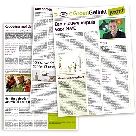 Opwerpen van een nieuw uit te geven krant; de GroenGelinkt krant. Doelstelling: Een overzicht te geven van het aanbod natuur- en milieu-educatie. Dit onderling te verbinden en aan te bieden aan potentiële gebruikers.