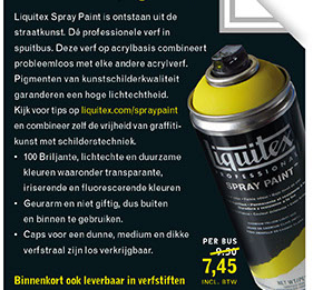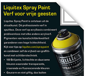 Advertentie voor Liquitex Spraypaint. Doelgroep: de jonge kunstenaar. 1/4 pagina Full Color