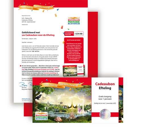 Implementeren van de nieuwe huisstijl in winnaarsbrieven, cadeaubonnen en ander drukwerk van de NPL. Typeface: Myriad Pro