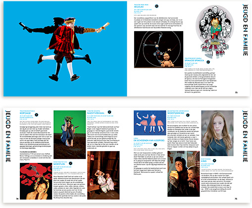 Vormgeven en dtp binnen het bestaande concept van de Seizoensbrochure Stadsschouwburg Utrecht. Formaat: 260 x 200 mm. Omvang: 166 pagina’s. Typeface: Agenda Regular, Medium, Semibold, Bold.