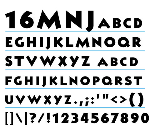 Nobel Open Kapitalen. Uit een letterproef met loodzetsel van zetterij Teterode. gemaakt in FontStudio