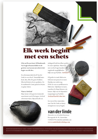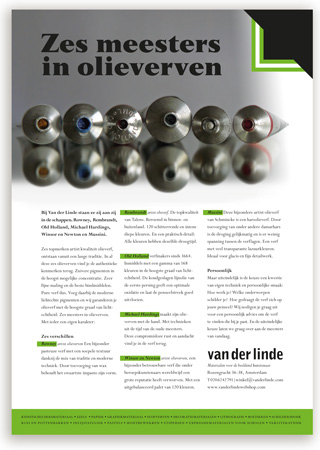 Van der Linde presenteert zich steeds opnieuw via hoogwaardige productinformatie als de professionele zaak voor kunstschildersmaterialen waar de beeldend kunstenaar producten, service en vakkennis vindt.