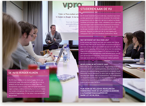 Binnen het concept vormgeving en dtp van de brochurelijn voor 100 bachelor-brochures en 150 brochures voor de masteropleidingen.